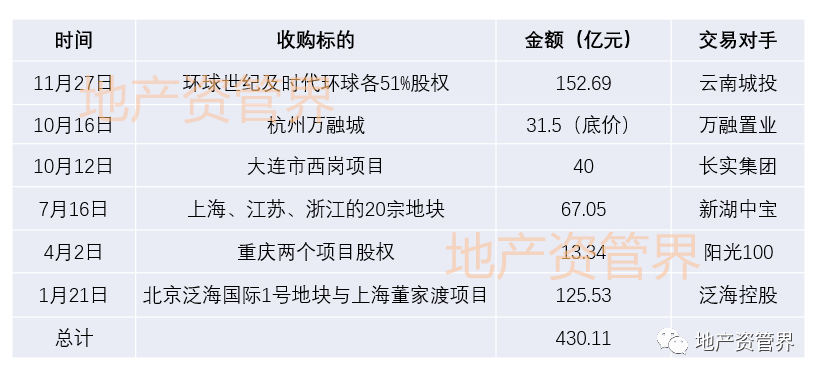 隨后交易對手不斷變化,從深陷財務危機的陽光100到新湖中寶,再到近兩個月的長實、萬融和云南城投,粗略算下來,孫宏斌今年又掏出了430億以上來“掃貨”。