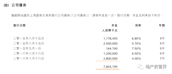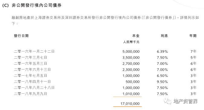 第二,是公司債券和非公開發行境內公司債券。融創于上海證券交易所分別發行公司債券和非公開發行境內公司債券,累計13筆資金,共計248.5億元人民幣。