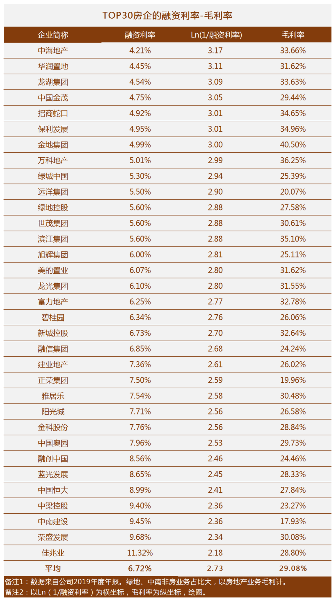 一、TOP30房企的毛利率與融資利率