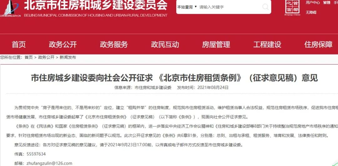 2020年9月,住建部發(fā)布《住房租賃條例(征求意見(jiàn)稿)》;
