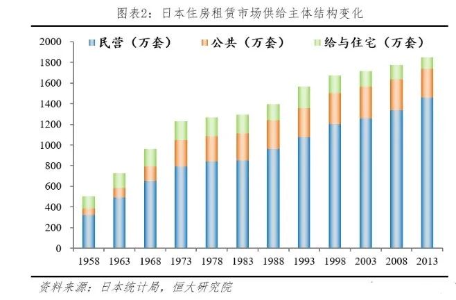 從1958到2013年,日本住房租賃供給市場(chǎng)結(jié)構(gòu)中,平均每年民營(yíng)租賃住房占租賃住房總量的比重為69%;