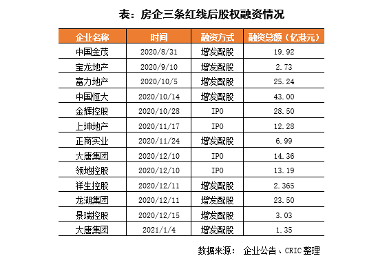 除了在供應(yīng)鏈金融方面的逐步嚴(yán)控收緊,三條紅線后,監(jiān)管在股權(quán)融資、信用債等方面也加強監(jiān)管,加大對房企融資的限制。在股權(quán)融資方面,2021年至今沒有企業(yè)上市成功,且當(dāng)前上市招股書在有效期的僅有三巽控股、天泰控股、新星宇控股這3家企業(yè)。與此同時,非IPO股權(quán)融資發(fā)行審核更嚴(yán),2021年里僅有大唐控股發(fā)行1.35億港元的增發(fā)配股,但這是基于其2020年底上市IPO成功后行使的超額配股權(quán),除此之外再無企業(yè)實現(xiàn)股權(quán)再融資發(fā)行。