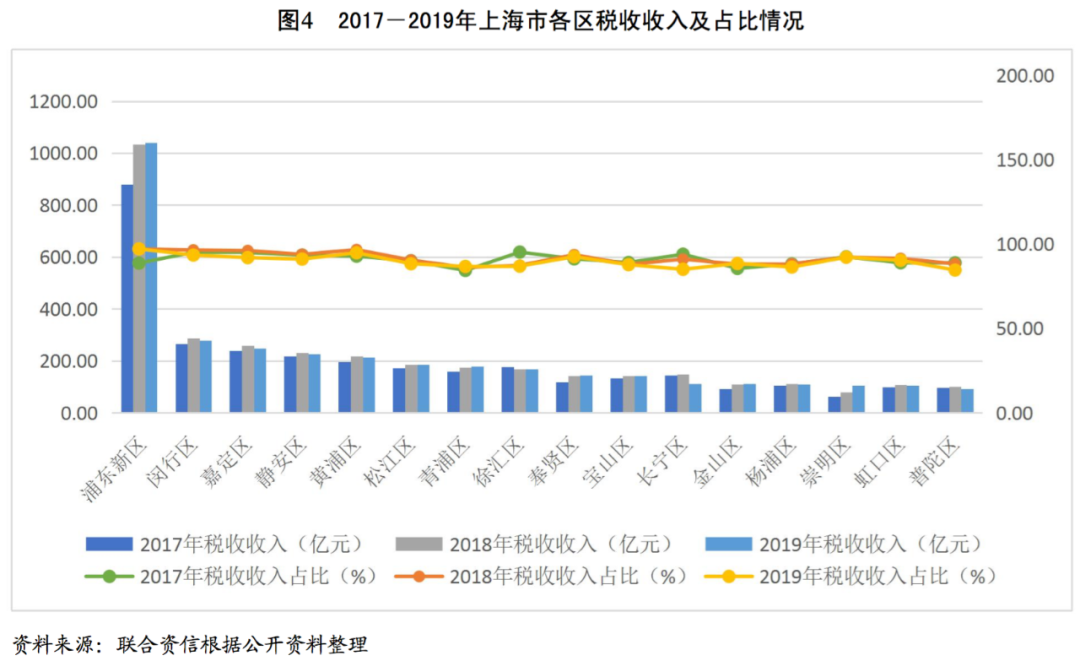 3.上海市本級及各區財政收入對發債城投企業債務的支持保障能力