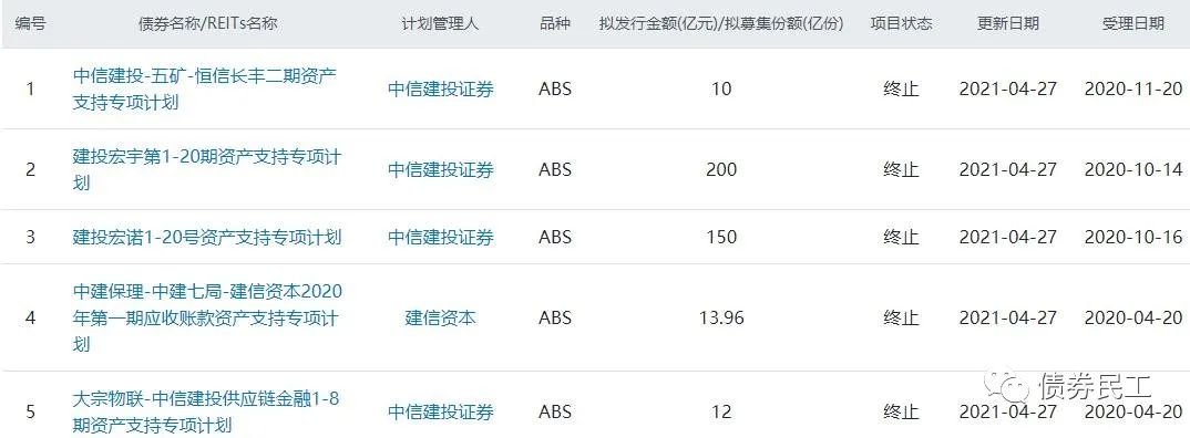 就在一周前,上海證券交易所于2021年4月20日終止了5只ABS產(chǎn)品的審核,合計(jì)擬發(fā)行金額為162.24億元。