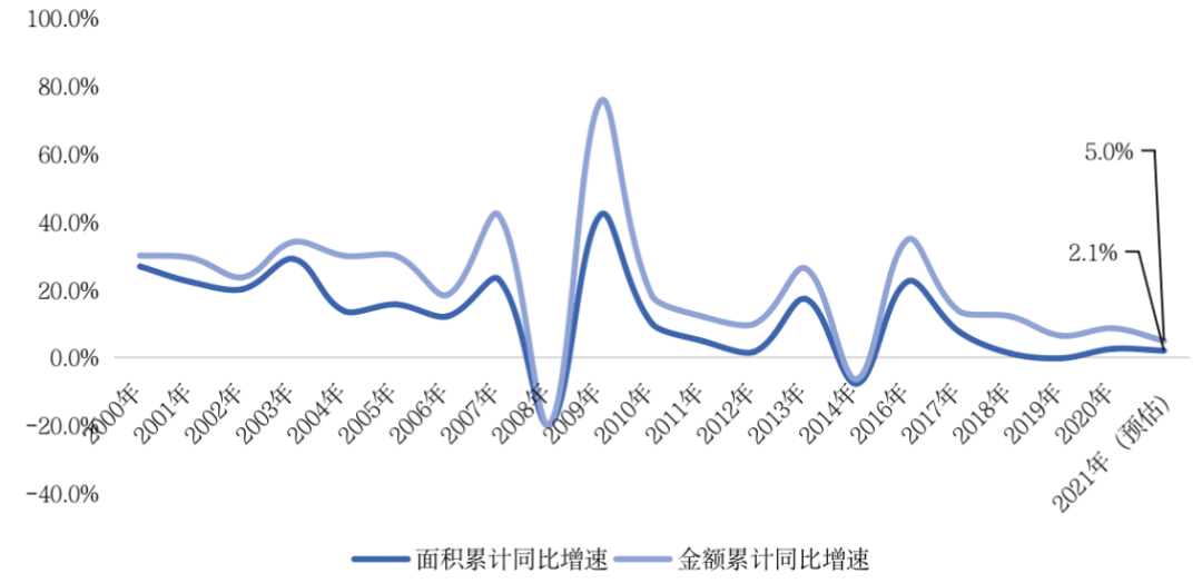 預估2021年全年房地產開發投資規模同比增5.2%。建安投資中竣工投資是開發投資的最主要支撐力,全年同比料增15.9%。受全行業下行和過去兩年開工、拿地規模較高影響,全年新開工面和和土地購置面積將分別降10.3%和11.4%,對開發投資失去支撐。