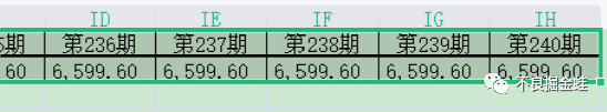 這個是不是就比上一個計算要繁瑣了,沒關系。同樣打開表格,輸入對應的現金流,從第1期到第240期都要輸入哦。我只是中間太長了就截圖了兩端的,有快捷方式可以自動填充,自己百度去!。這里有一個不一樣的地方要把IRR轉化成年化的IRR,前面還是一樣在B3單元格輸入公式=IRR(B2:IH2),在B4中輸入公式=(1+B3)^12-1。這里不說為什么了,12次冪的意思就是每月還款。要是每季度還款把12改成4。