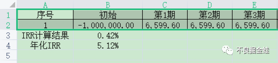 在公告中提到了復利計算方式和樣例,采用內部收益率法,英文名稱Internal Rate of Return,簡稱IRR。至于IRR的原理和解釋,也不在這分享了。那我們分享點什么呢?如何自己簡單計算IRR。