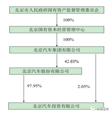 從股權(quán)結(jié)構(gòu)看,北汽投資的控股股東為北汽股份(1958.HK),持股比例為97.95%,公司實(shí)際控制人為北京市國(guó)資委。