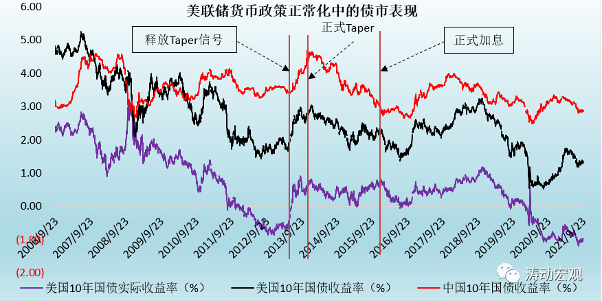 1、在美聯(lián)儲向市場釋放Taper信號和正式啟動Taper過程中,美國10年期國債收益率趨于快于上行。