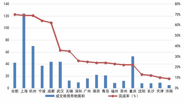 1、租賃用地僅占22城土地出讓面積5%,長三角完成率最高