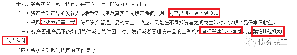 指導意見中,對于剛性兌付的具體類型界定非常明確:保本保收益、資金池保本保收益以及自籌或者委托其他機構代償資產產品。這幾種類型都是金融機構進行剛性兌付的常用手段。從一個角度來看,這也是投資者依賴剛性兌付的根源。