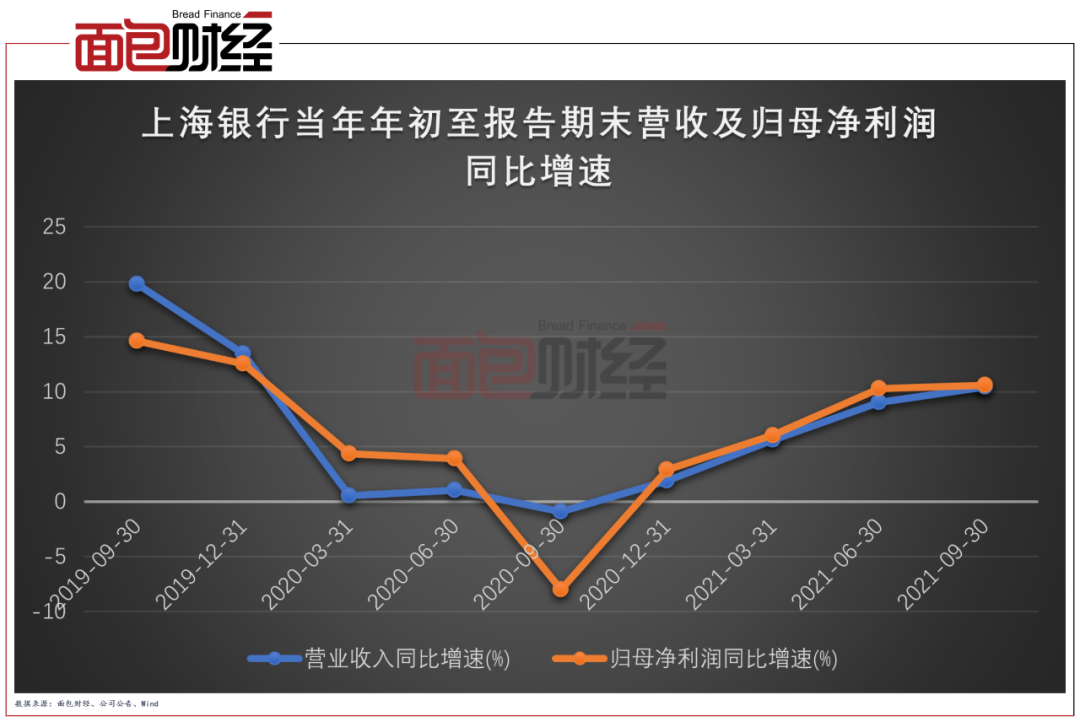 得益于中國率先控制住疫情以及自身經營質量的提升,上海銀行2021前三季度營收與利潤增長速度明顯提升,重回雙位數增長通道。