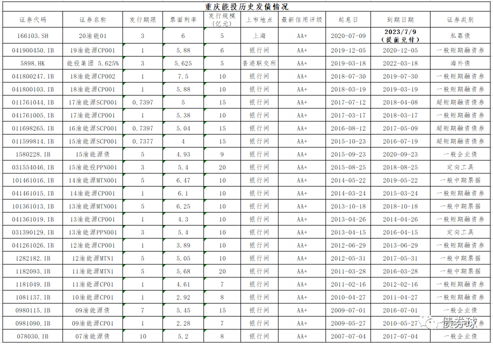 重慶能投歷史發(fā)行24只債券,合計(jì)255億元,目前均已到期并完成兌付。值得注意的是20渝能01,本只債券于2020年7月9日發(fā)行,期限2+1年,照理說,最早也是于2022年7月9日到期,但是卻于2021年11月23日提前完成兌付,不得不讓人猜想本次破產(chǎn)重整似乎早有計(jì)劃。