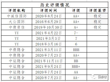 從歷史評級情況來看,中誠信和大公終止評級前,評級均為AA+,中誠信最近評級距今約一年半。而其他如YY、中債隱含和中證隱含,其評級均有下行趨勢,其中中債隱含和中證隱含下調(diào)幅度較大。其主要原因大概是最新評級時(shí)間距現(xiàn)在較近。