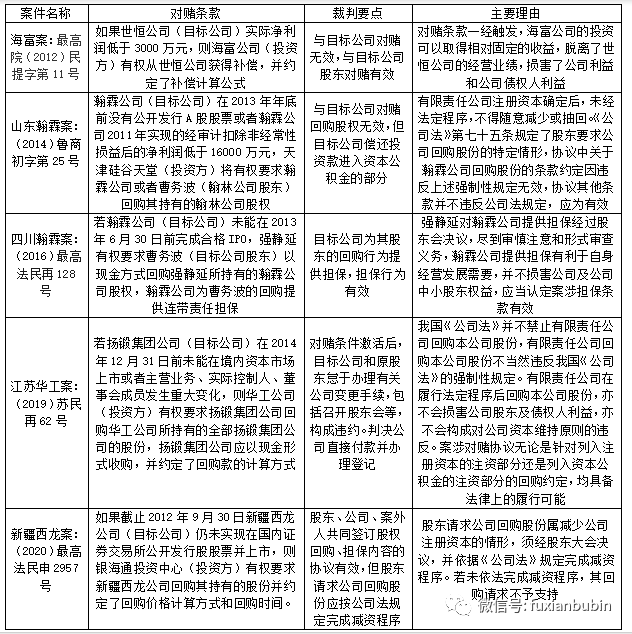 (一)司法判例解析對賭條款/協(xié)議的法律效力