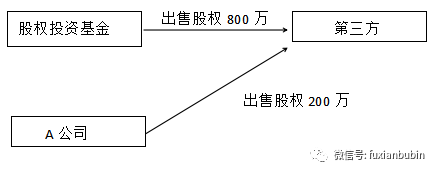 假設(shè)股權(quán)投資基金(投資方)投資A公司,若此時股權(quán)投資基金占有的股份為20%,A公司的其他股東占有的股份為80%,此時若A公司擬出售1000萬股的股權(quán)給第三方,其交易結(jié)構(gòu)為: