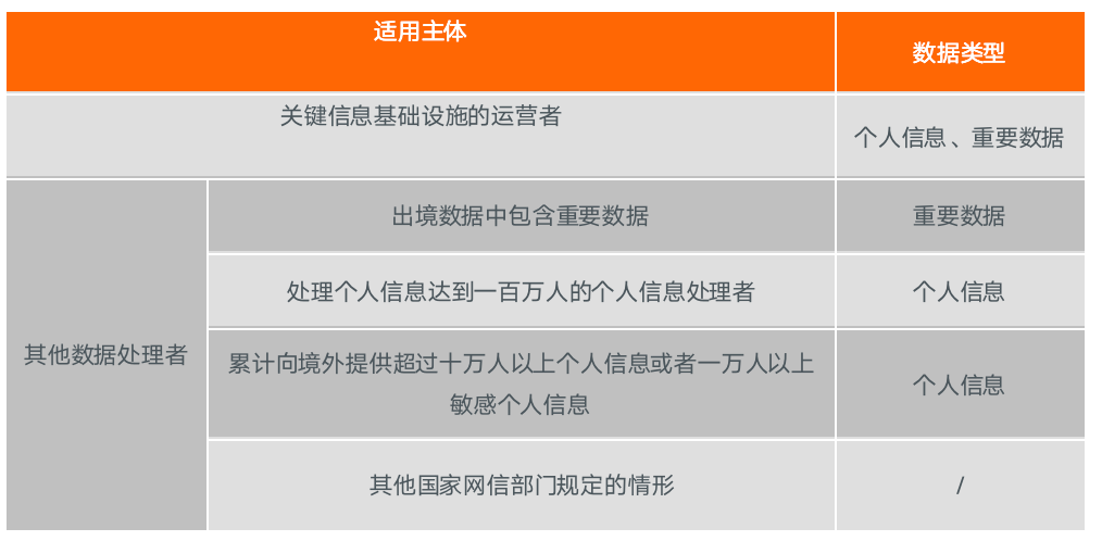 其中,網絡運營者主要指關鍵信息基礎設施的運營者和其他數據處理者。然而,從《網絡安全法》到《數據安全法》和《個人信息保護法》,都只對關鍵信息基礎設施的運營者做出了明確的個人數據或重要數據安全評估需求,而對于其他數據處理者的數據出境安全評估并未明確規定。