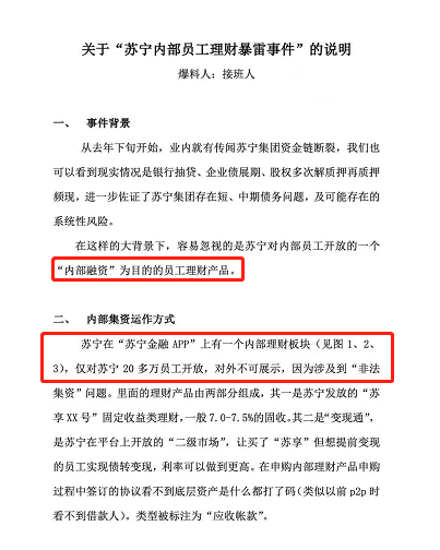 扒財經Bacaijing收到蘇寧員工的爆料信。