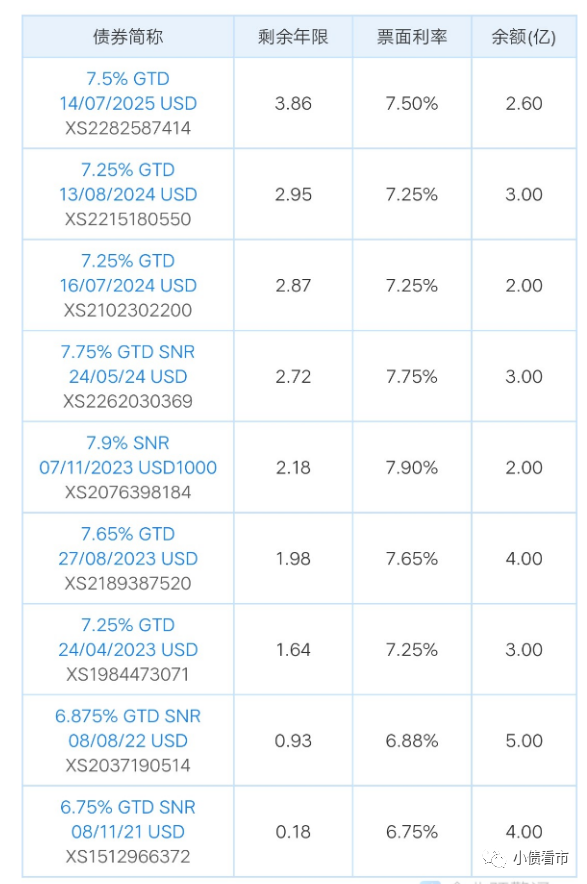 存續(xù)美元債情況