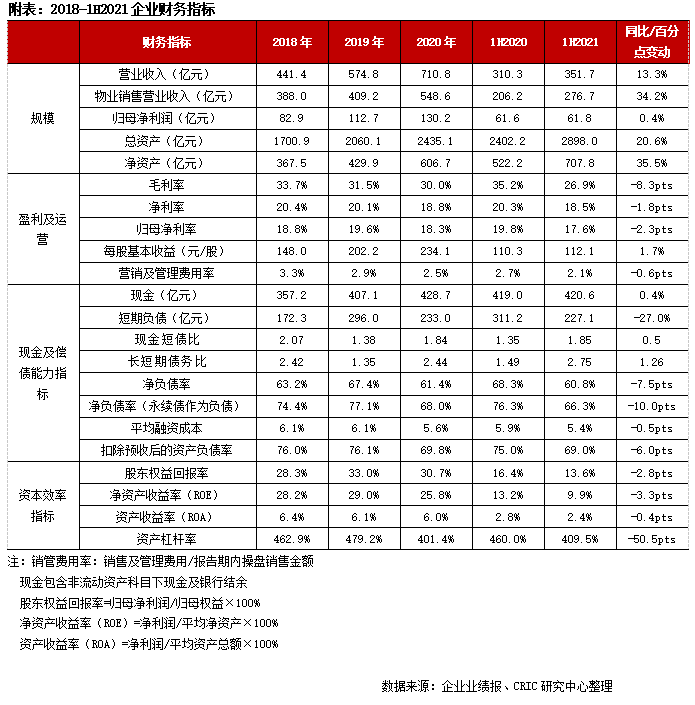上半年新增融資成本為4.6%,報告期末加權(quán)平均借貸成本為5.4%,較2020年末進一步降低,保持在行業(yè)低位區(qū)。