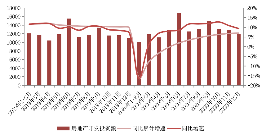 值得注意的是,受融資端“三條紅線”的影響,房地產開發投資額單月同比增速已連續3個月收窄,至12月已降至10%以下,后續增長勁頭略有乏力。