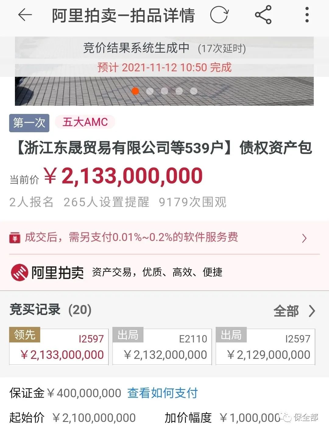 本次資產包自2021年11月11日10時開始競價,11月12日10時進入延時競價階段。