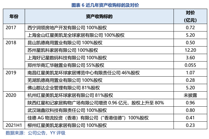 但是地產進程過半,資產質量決定后續企業的生存質量。美凱龍家居這種業態,也受其自身擴張、收縮和市場風格切換的影響(全屋定制、簡化清新風格)。2021年,紅星控股已“壯士斷腕”,出售自己的地產子公司——紅星企發,而旗下美凱龍家居也多次出售子公司股權,將自身業務版圖縮小回家居賣場。