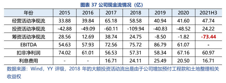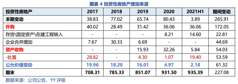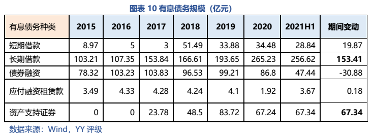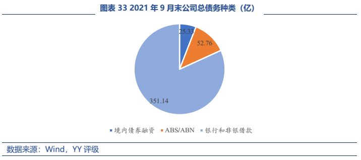 財務層面而言:截至21年9月末短債規模172.3億元,而同期現金及現金等價物僅57.3億元。償債來源方面:①經營獲現能力相對穩定,按照21年前三季度水平,未來一年預計有50-60億元凈流入。②資產處置方面,2021年前三季度賣出物流子公司(約按賬面價值打9折)、贖回理財產品,投資活動流入81.68億元緩解了部分資金壓力。③再融資方面,銀行借款有抵押物支撐,預計短期內得以延續(但不排除在商場經營效益下滑趨勢下銀行拒絕滾續或要求新增抵押的可能),但到期的債券(1年內約20億元,不含有抵押的ABS)若需以銀行借款接續,難度較大,因為當前投資性房地產受限比例已經達到87%。