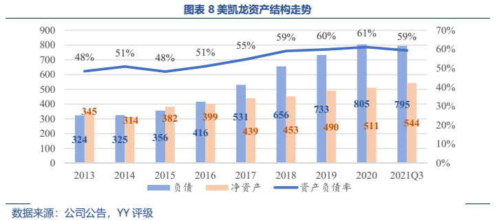 回顧美凱龍家居的這些年,作為家居賣場龍頭,2015年后總資產快速增加,這背后是權益融資與債務融資的雙增長。資金主要流向投資性房地產領域,重資產的擴張模式使得美凱龍成為“商業地產企業”,雖然已宣稱多年的“輕資產”轉型,但仍在增加自有商場數量,尚需投資規模仍較大。