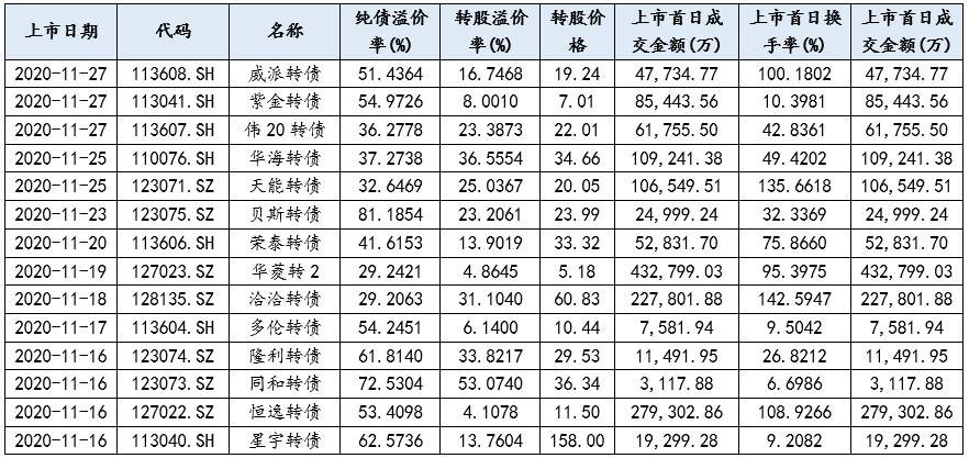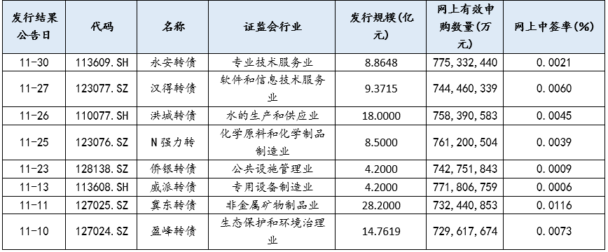 1、11月可轉(zhuǎn)債發(fā)行結果