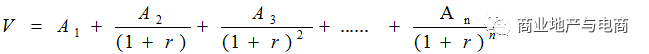 其中Ai為“凈物業收益”現金流,r為折現率。