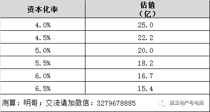 不同資本化率下1億NOI值對應的估值水平