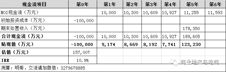 --持有期5年,期末處置資本化率6.5%;