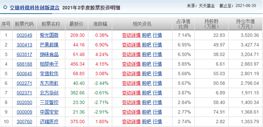 自2020年7月3日至今,其管理的“交銀先鋒混合”收益超過了60%,今年以來的收益也達到了16.42%,在同類中排名前20%,這其中的奧秘就藏在基金中報里。