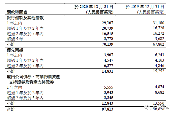 除此之外,雅居樂集團(tuán)還有681.85億非流動(dòng)負(fù)債,主要為長(zhǎng)期借貸,其長(zhǎng)期有息負(fù)債合計(jì)592.44億元。