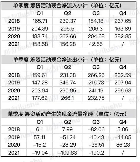 而還債資金的流出在三季度達到232.75億元,數值不小。▼