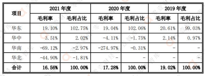 另外在毛利率方面,2021年老鄉雞在華東地區實現了19.1%的毛利率,華中地區毛利率僅為3.51%,華南和華北地區目前均處于虧損狀態。