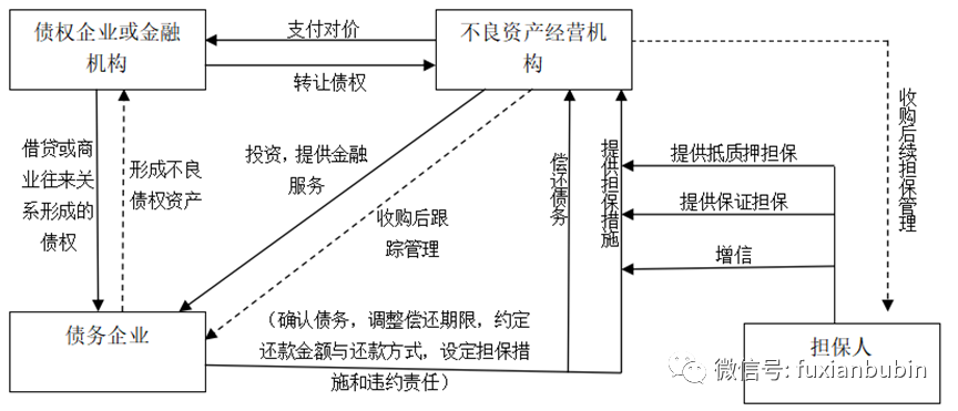 債務(wù)重組是針對(duì)出現(xiàn)流動(dòng)性困難的企業(yè),不良資產(chǎn)經(jīng)營機(jī)構(gòu)分別與債權(quán)人、債務(wù)人就還款金額、還款方式、還款時(shí)間等債權(quán)債務(wù)問題達(dá)成協(xié)議,通過更改債務(wù)條款,實(shí)行債務(wù)合并的方式,優(yōu)化該類企業(yè)的資產(chǎn)負(fù)債結(jié)構(gòu)、盤活企業(yè)不良資產(chǎn),幫助企業(yè)渡過財(cái)務(wù)危機(jī)的一種不良資產(chǎn)經(jīng)營模式,其基本業(yè)務(wù)流程如下圖: