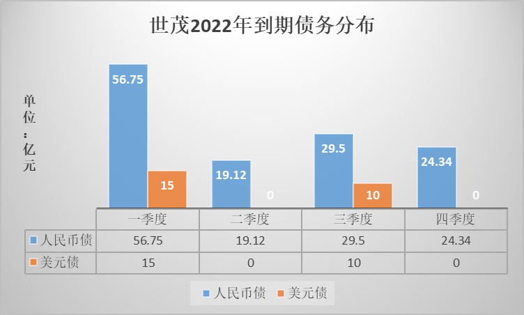 根據公開資料顯示,世茂2022年到期的公開市場債務合計約為130億人民幣與25億美元。其中一季度則是全年之中到期債務的高峰。