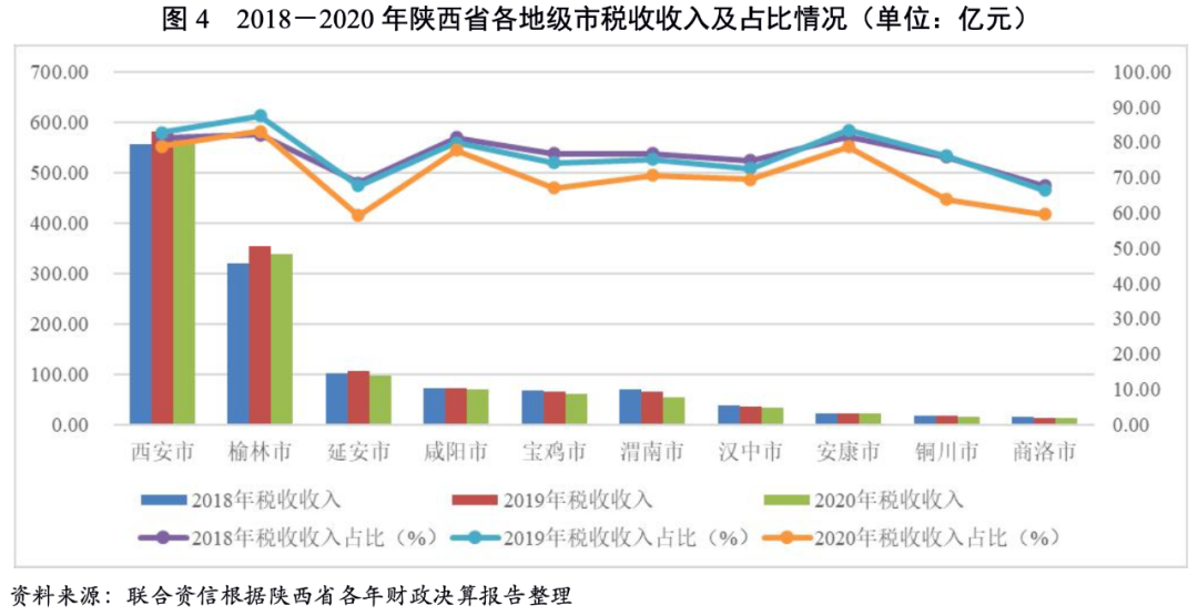 3.陜西省各地級(jí)市財(cái)政收入對(duì)發(fā)債城投企業(yè)債務(wù)的支持保障能力
