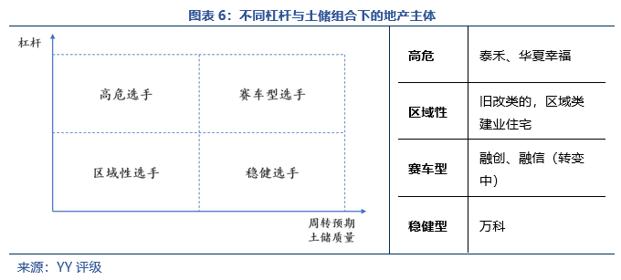 回歸地產(chǎn)的本源,此前的邏輯圍繞在土儲、杠桿兩大角度。未來而言,土儲決定了其安全厚度;杠桿決定了目前的生死時速,類似于土儲是汽車的底盤,杠桿是目前速度。