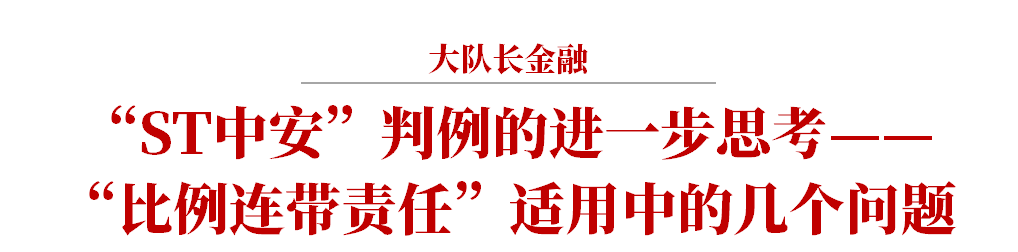 小結(jié)以上分析,“ST中安”判例所確立的“比例連帶責(zé)任”,是對(duì)實(shí)踐中關(guān)于中介機(jī)構(gòu)“剛性”連帶責(zé)任爭(zhēng)議的回應(yīng),以及對(duì)《九民紀(jì)要》、《債券座談會(huì)紀(jì)要》等文件精神的落實(shí),對(duì)今后的類案裁判將具有積極的示范判例意義。
