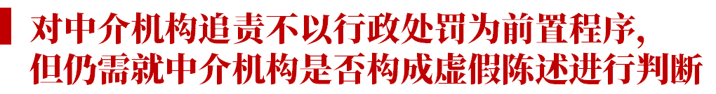 需要注意的問(wèn)題是,由于中介機(jī)構(gòu)未受行政處罰,因此中介機(jī)構(gòu)是否構(gòu)成虛假陳述尚無(wú)定論。我們認(rèn)為,不能以上市公司已經(jīng)構(gòu)成虛假陳述為由,就必然得出中介機(jī)構(gòu)也同樣構(gòu)成虛假陳述的結(jié)論。中介機(jī)構(gòu)是否構(gòu)成虛假陳述,還需要結(jié)合中介機(jī)構(gòu)的職責(zé)范圍、注意義務(wù)、履職行為等事實(shí),通過(guò)案件的具體審理加以認(rèn)定。