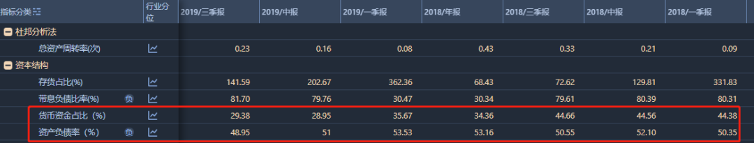 宜華生活的財報顯示,2015年至2019年三季度,公司貨幣資金分別為34.26億元、35.52億元、42.29億元、33.89億元和26.64億元,分別占當年總資產的26.92%、22.24%、25.32%、19%和16%。