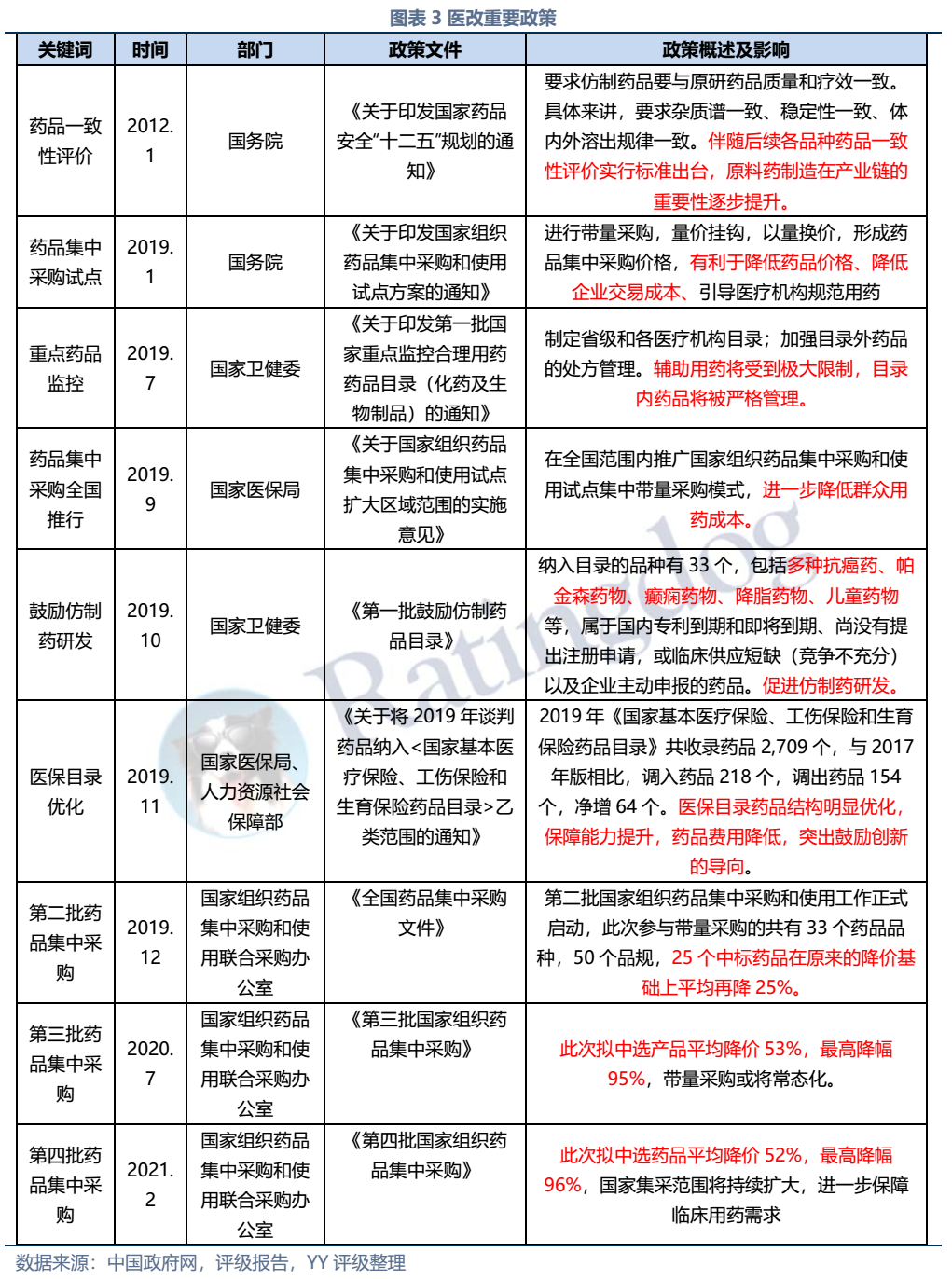 近年來,我國醫藥市場規模保持較快速度增長, 2021年達19,220億元。不過我國醫藥行業長期處在相對粗放發展的階段,表現為行業集中度較低,低端、劣質仿制藥較多且臨床需求高的藥品在專利過期后仍無仿制的現象屢有發生,在此背景下集中采購、醫保控費、一致性檢驗等政策出臺推進制藥行業逐步規范化,政策引導下資金實力和研發實力強的企業更具發展前景。