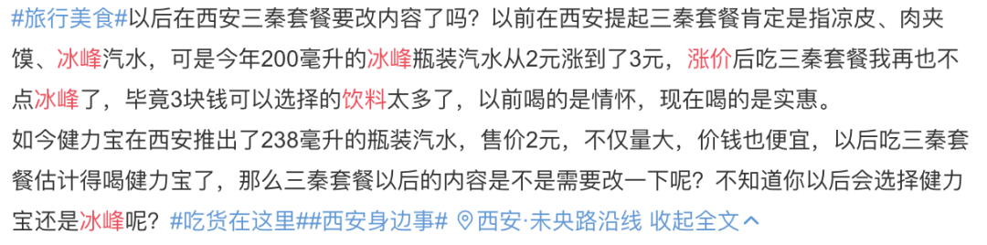 在此背景下,罐裝橙味汽水200ml版今年價(jià)格由2元漲至3元,這也變相降低了性價(jià)比優(yōu)勢(shì),一定程度上抵消了老字號(hào)主打的情懷優(yōu)勢(shì)。有消費(fèi)者直言,“漲價(jià)后吃三秦套餐我再也不點(diǎn)冰峰了,畢竟3塊錢可以選擇的飲料太多了,以前喝的是情懷,現(xiàn)在喝的是實(shí)惠。”