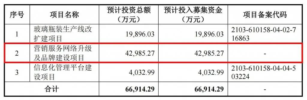 招股書顯示,冰峰飲料擬將1.99億元用于玻璃瓶裝生產(chǎn)線改擴(kuò)建項(xiàng)目,占比29.73%;4.3億元用于營(yíng)銷服務(wù)網(wǎng)絡(luò)升級(jí)、品牌建設(shè)項(xiàng)目,占比64.24%。
