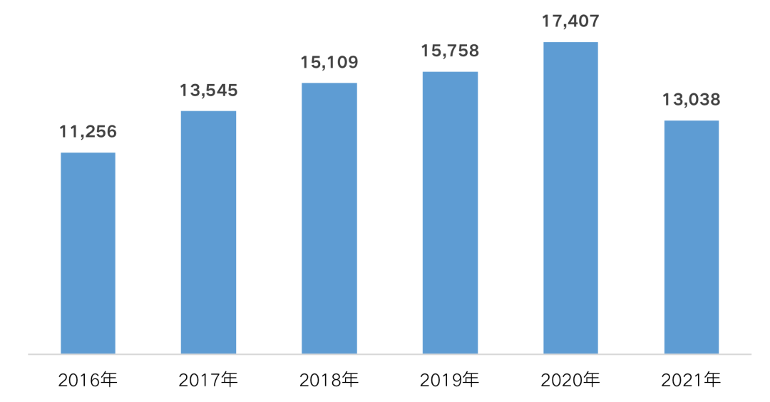 從融資總量來看,據不完全統計,2021年100家典型房企的融資總量為13038億元,同比下降25.1%,近五年來融資量首次出現負增長,增速同時達到五年來的最低點。