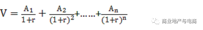 折現(xiàn)現(xiàn)金流法通過(guò)預(yù)測(cè)商業(yè)物業(yè)的現(xiàn)金流并按照一定的貼現(xiàn)率計(jì)算物業(yè)的現(xiàn)值: