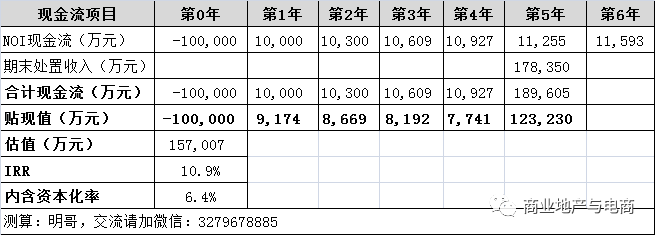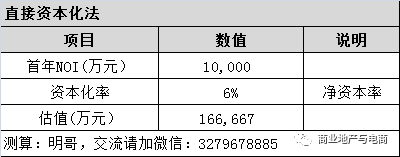 例1:某購(gòu)物中心NOI值1億,資本化率6%